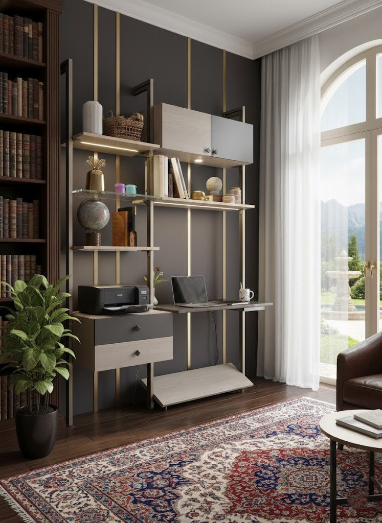 Experience productivity that rivals any corporate environment, right from home. Multiple electrical sockets power all your devices simultaneously, along with Built-in LED lighting to reduce eye strain during extended work sessions & with generous storage compartments this skeletal frame design creates an open, airy aesthetic that maximizes space utilization while maintaining structural integrity.